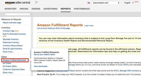 Both Order Reports and Amazon Fulfilled Shipment Reports go back a finite period so start collating this information now to ensure you do not miss any past orders information as time goes along.