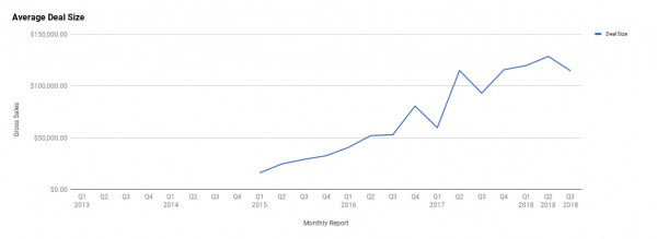 Similar to this quarter’s revenue, we saw a dip in our average deal size from Q2 to Q3. Our average deal size in Q2 was $128,765.84, while it was $114,752.39 in Q3. The Q3 deal size is also slightly lower than our Q1 average of $119,883.18.