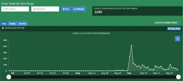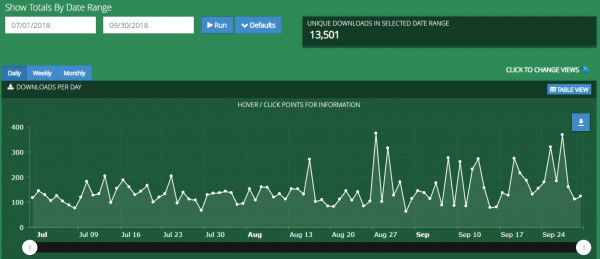 We had 17,215 podcast downloads in Q2 and only 13,501 downloads in Q3. Unless we produce more shows on a more consistent basis, it is very likely this will continue to be a downward trend.