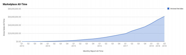 In Q3 2018, we brokered 69 sales for $7,930,476.42 in revenue, which pushes our all-time revenue to $61,398,795.43. While we sold three more deals in Q2, our Q3 number is up from Q1’s 63 deals sold. Overall, it is nice to see that even if there is a dip from a previous quarter, the overall trend is still upwards.