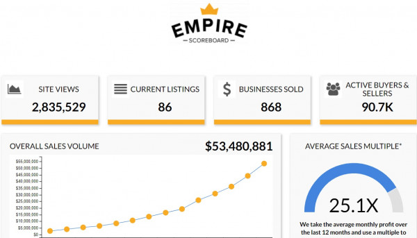 The scoreboard shows you how many visitors we have, our current listings, the number of businesses we’ve sold, our contact database, sales volume, average multiple, and more.