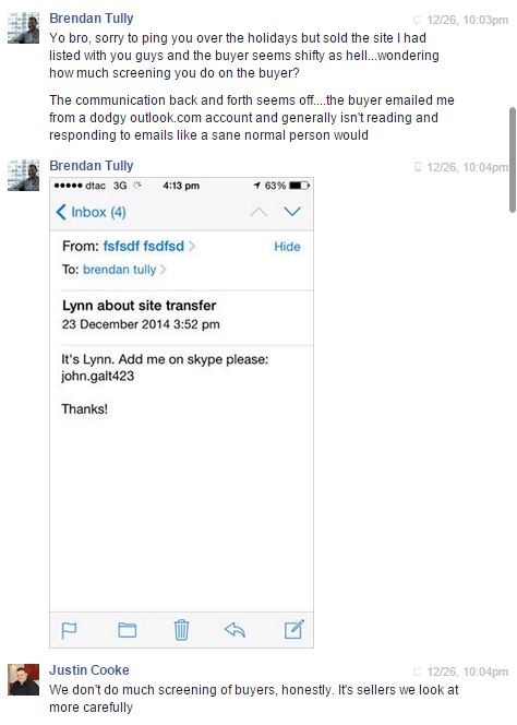 After the sale was complete, and through the transfer process for listing #40118, there was a bit of disruption between the buyer and seller. This was a very small eCommerce site valued at just over $2K. The seller, a good personal friend of ours named Brendan, had mentioned that the new buyer seemed a bit dodgy and was “not responding like a sane person.”