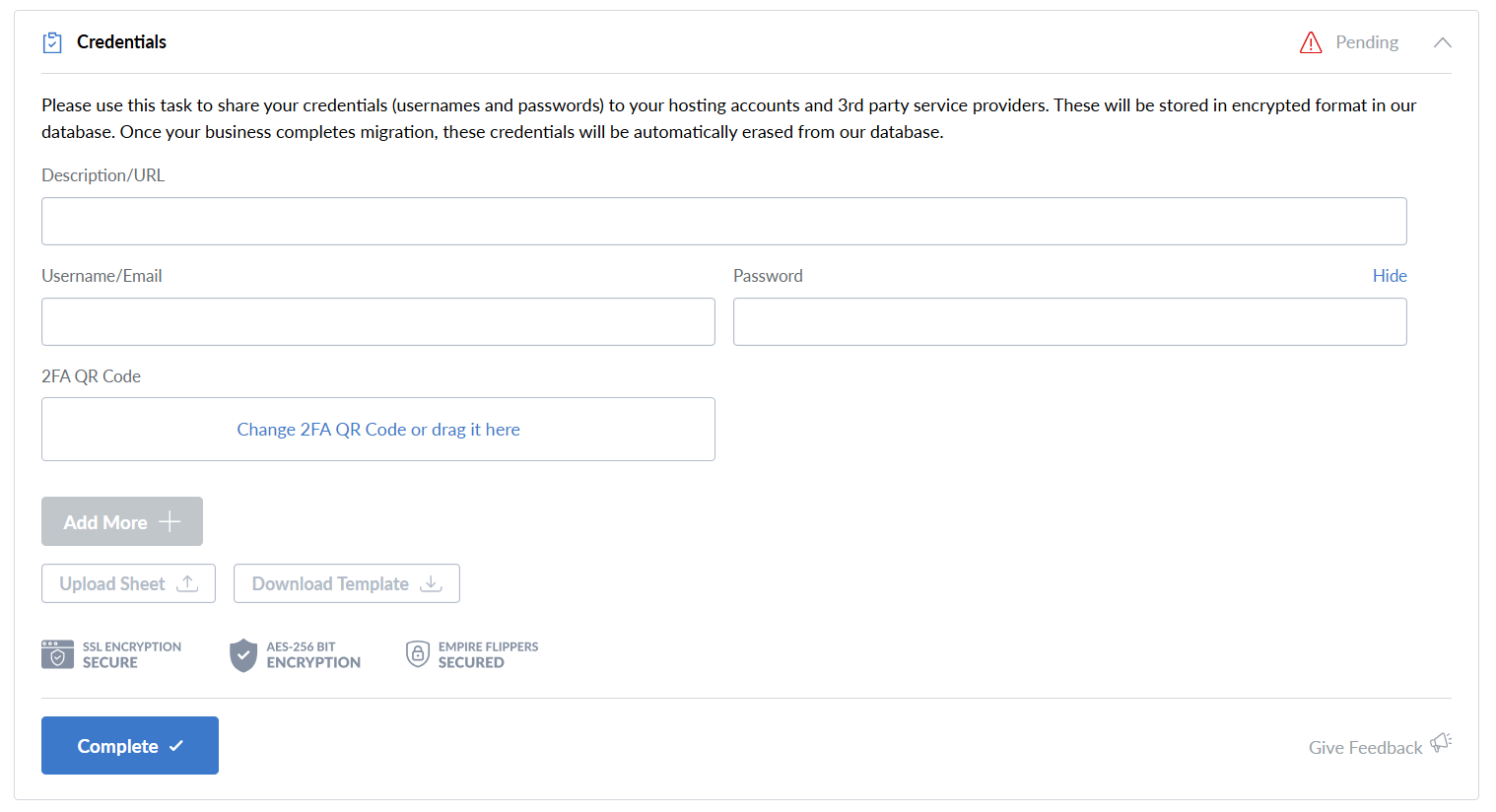 After a business is sold on Empire Flippers, all assets need to be transferred from the seller to the buyer during the migration process. A big part of that is the credential-sharing process for all online accounts needed to run the business. This update introduces bulk management tools and makes the process faster, more accurate, and easier to manage for sellers, buyers, and our Migrations Team.