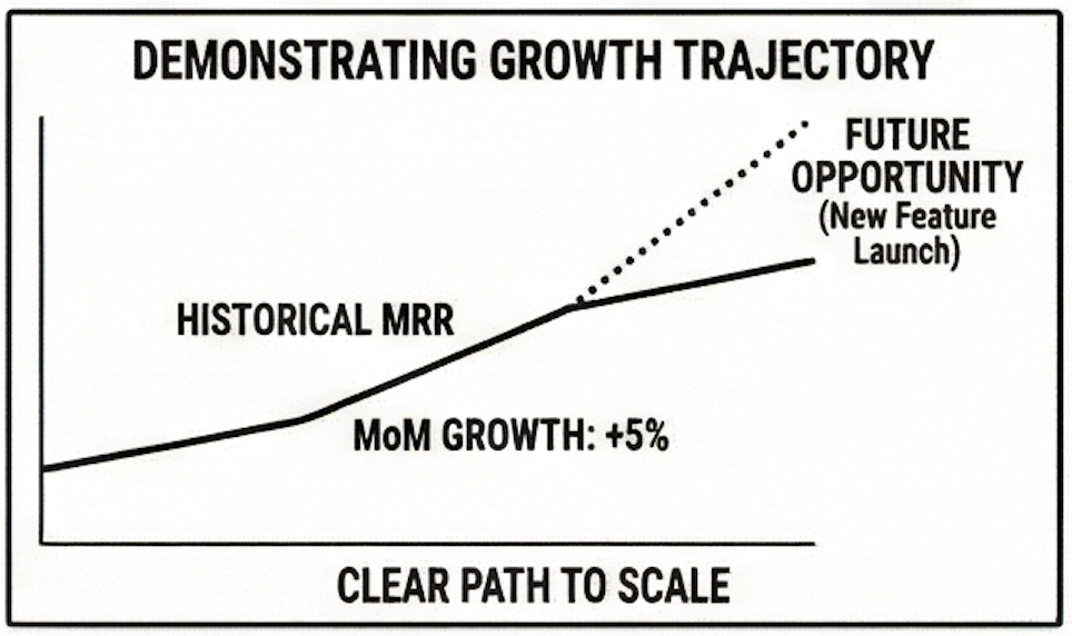 Show consistent month-over-month growth in key metrics that matter. And even if it’s modest, consistent growth is superior to sporadic spikes.