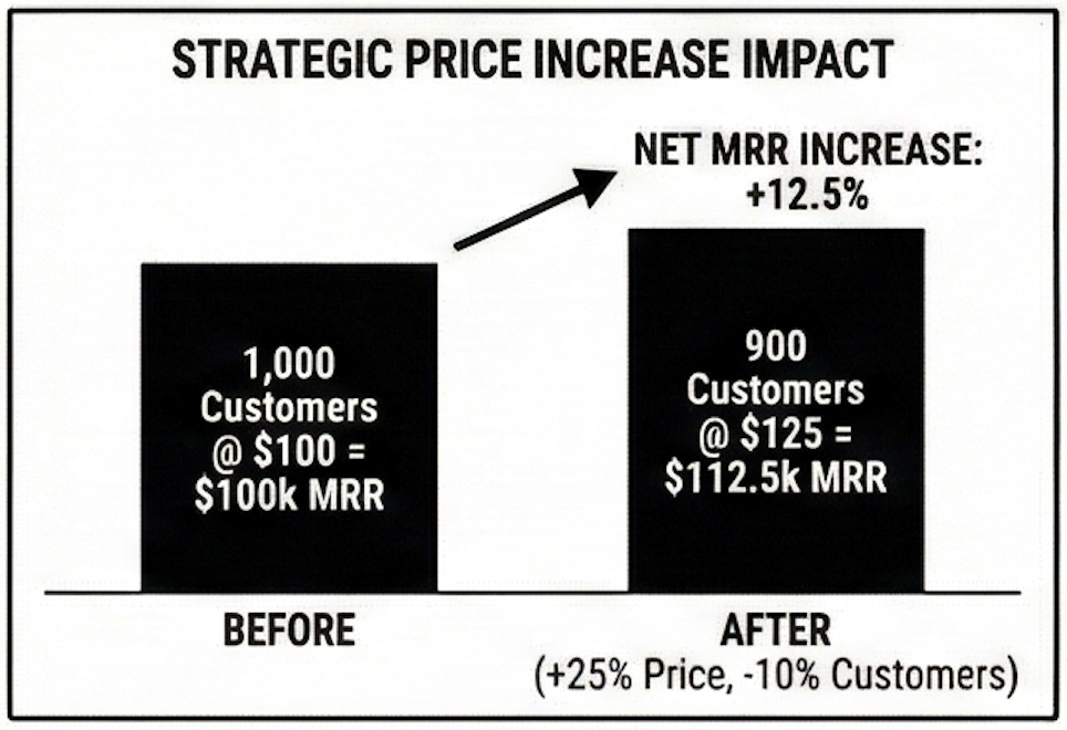 The math is simple: if you increase prices by 25% and lose 10% of customers, you’re still ahead by roughly 12.5% in revenue.