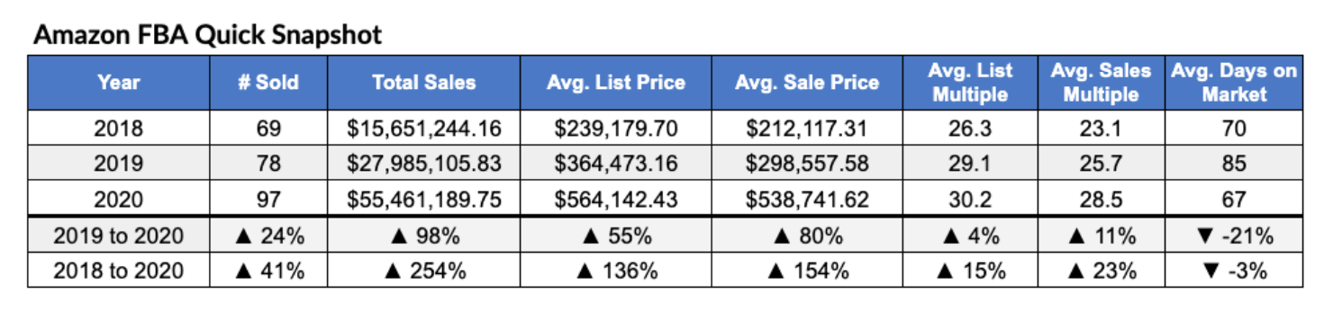 - We sold 24% more FBA businesses in 2020 than in 2019, and 41% more than in 2018.