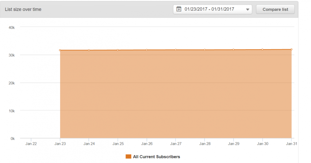 At the end of January, we had 33,881 contacts actively subscribed to our email lists –– breaking the 30,000 mark at last!