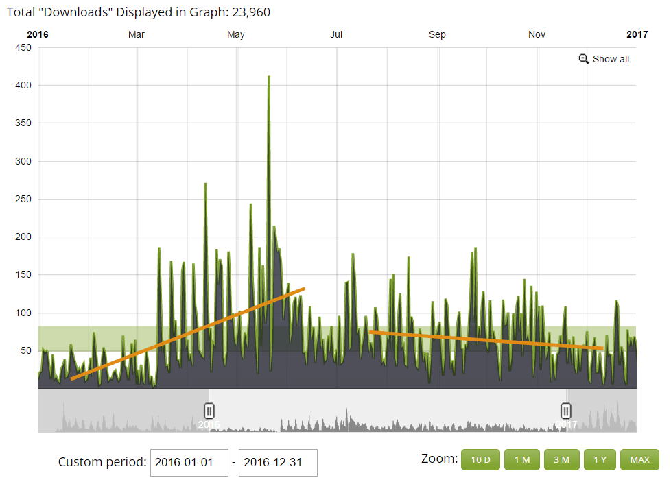 Our total traffic for 2016 came to 605,393 visitors, with an increase in month by month traffic, despite a small penalty we received due to a spam attack on our support system in November and December (which has since been resolved).