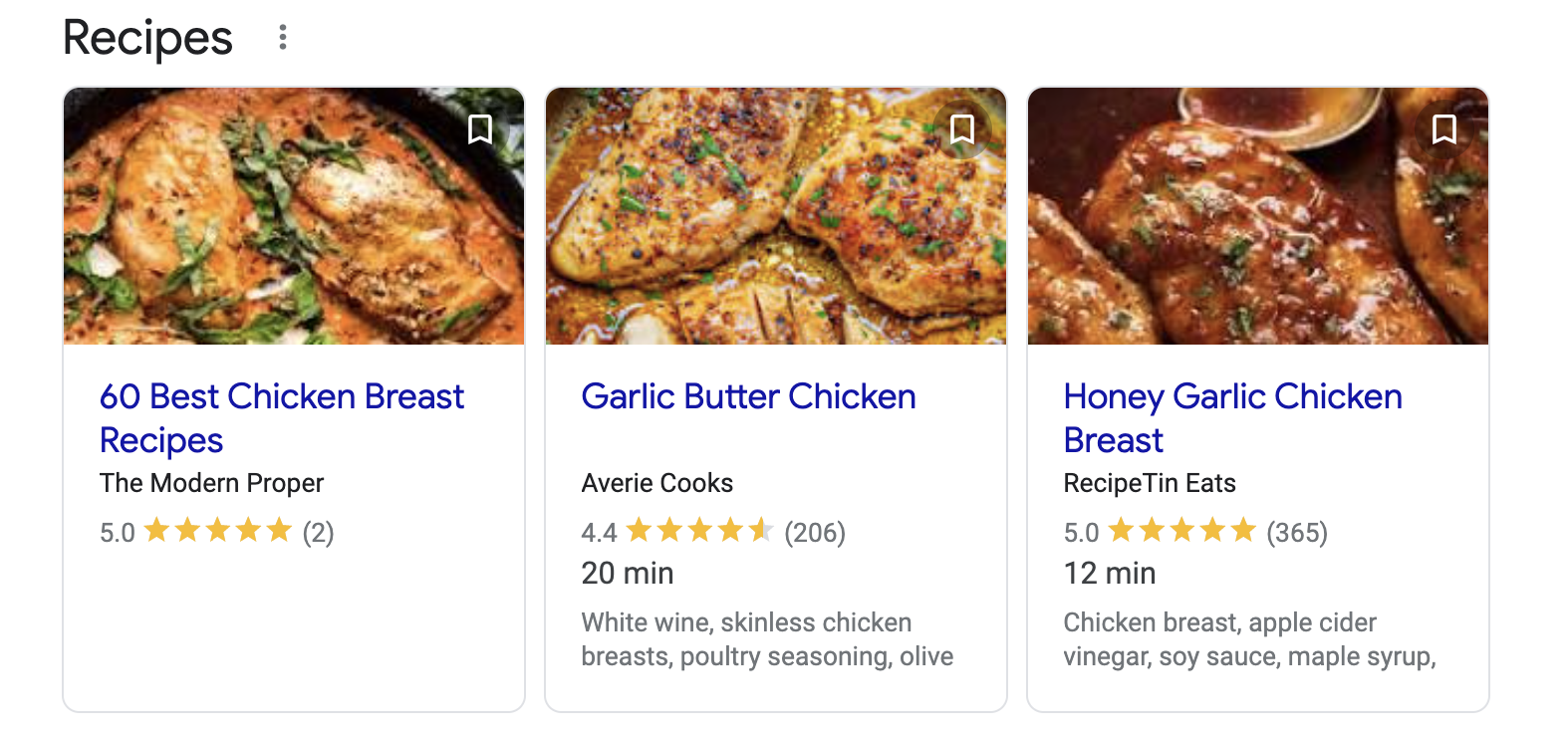 There are several ways to use structured data. You might recall seeing a recipe displayed in a carousel rich result snippet: