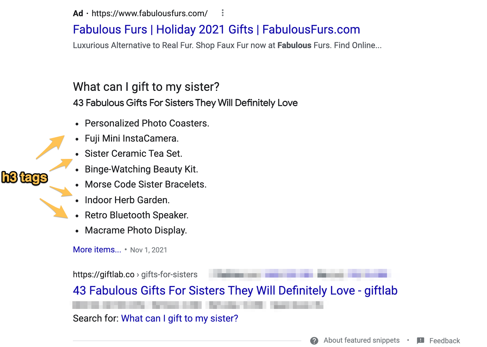 Below is a bulleted list of featured snippets displayed in the SERP. We learned that when 80% of a page’s content is a list display, we see more impressions and featured snippets linking to these pages.
