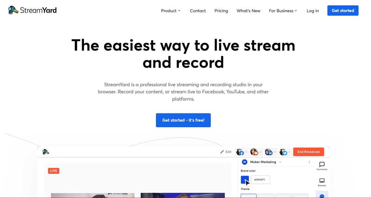 StreamYard is a live-streaming platform that makes it easy to host professional-looking interviews, presentations, and webinars.