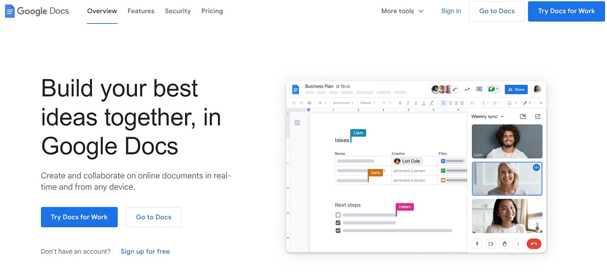 Pricing – It is free. However, you also get many add-ons and extensions to increase the functionality of docs.