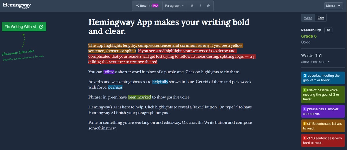 Writing clearly and concisely is crucial. The Hemingway Editor is a tool that can help you achieve this goal.
