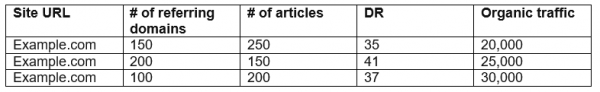 The next step is to look at the top 3-5 niche-specific sites and review the type of backlink profile and number of articles needed to generate the traffic needed for the site to make the revenue levels you’d like to reach.