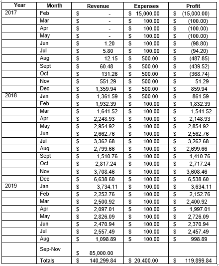- Total Earnings: $55,295 USD (Feb 2017-Oct 2019)