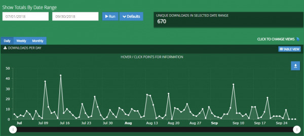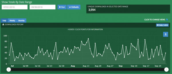 We had 17,215 podcast downloads in Q2 and only 13,501 downloads in Q3. Unless we produce more shows on a more consistent basis, it is very likely this will continue to be a downward trend.