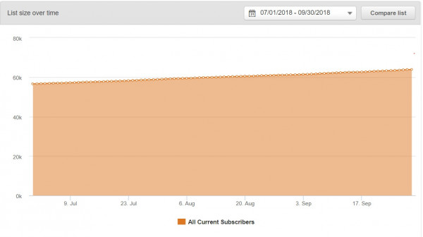 Between Q2 and Q3, our email list grew from 58,237 to 66,706 subscribers.