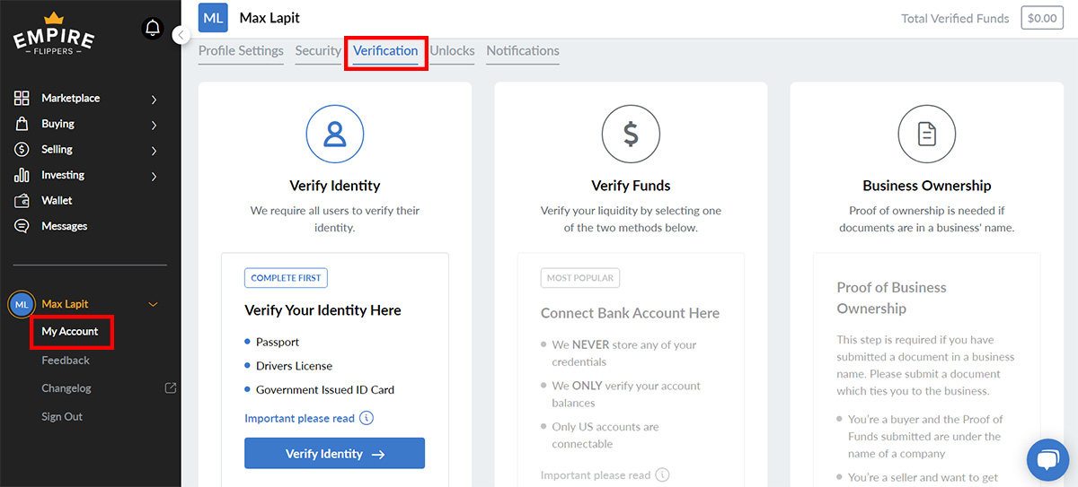 Verifying your identity is an important part of buying and selling on the Empire Flippers marketplace.