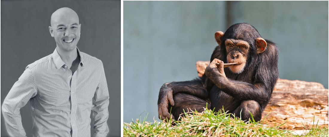 - The chimp has way more hair than me.