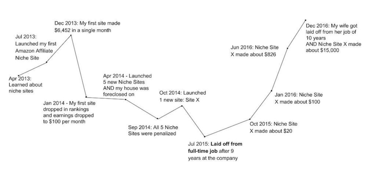 “I was making five figures a month, and things were great! Then, my site got hit with a penalty from Google, and my income dropped like a rock.”