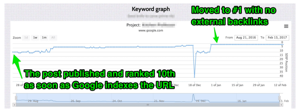Check out the image below with one example of Keyword Golden Ratio compliant content. That’s just one example from my SerpLab.co.uk dashboard, and a large majority of the other 199 posts also ranked in the top 10.