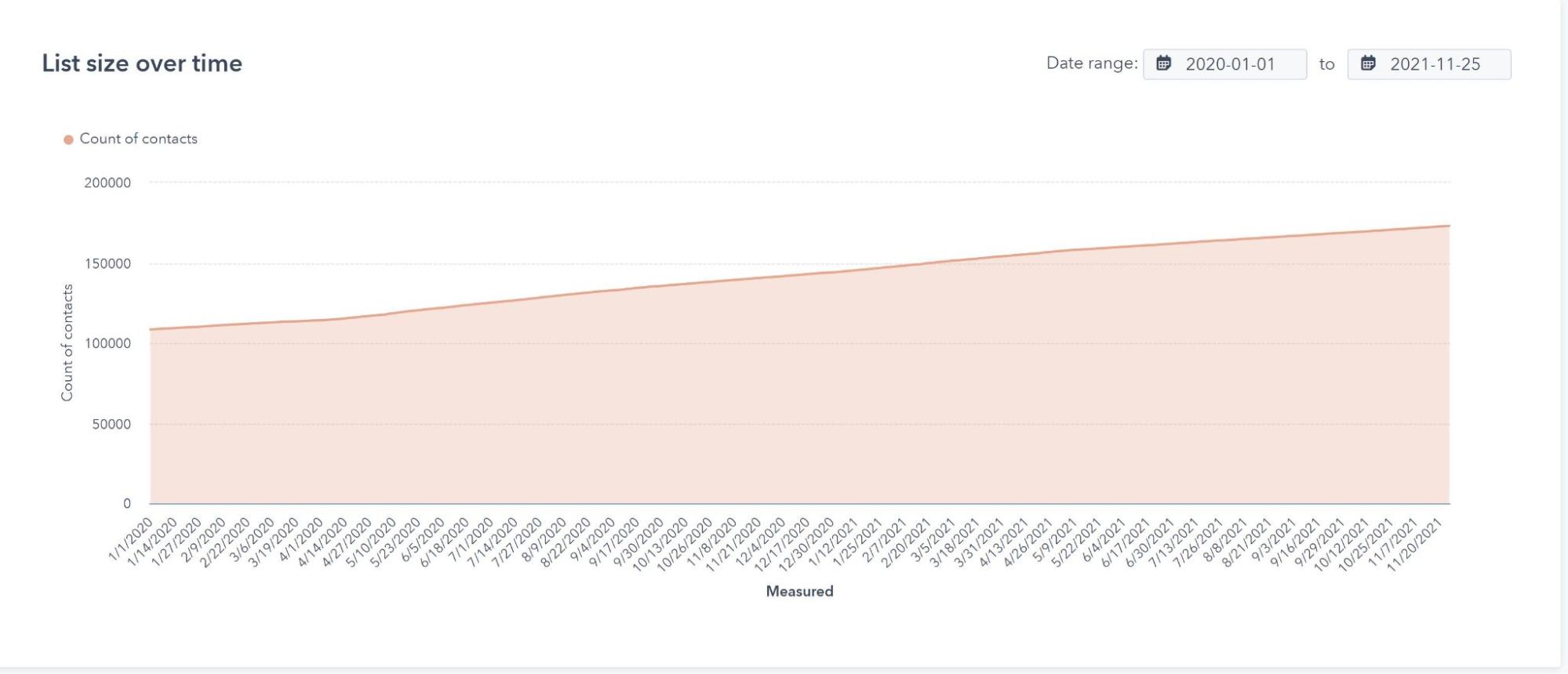 You can see our contact growth from January 1st, 2020, to the end of Q3 in the chart below.