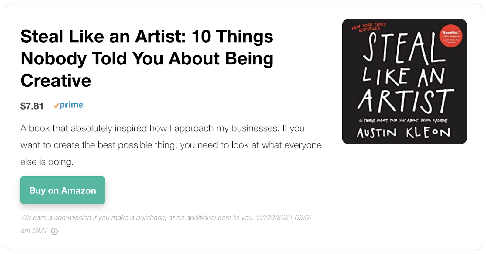Unlike a product roundup, which is a single blog post, a Resources page is a dedicated page on your site (usually in the navbar) that people can find easily.