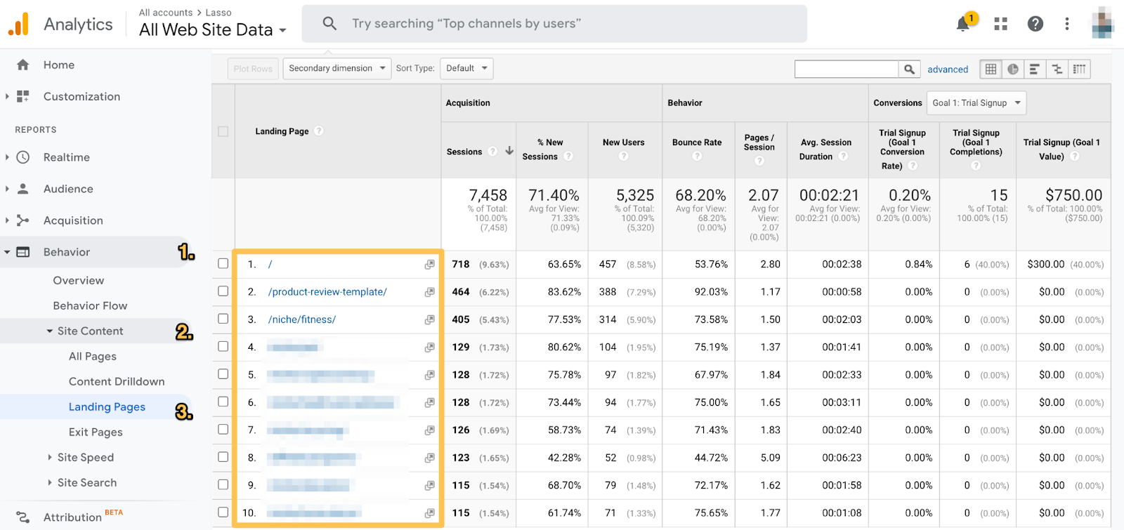 Landing pages are the “front doors” to your site and are how people find you. Inspect these pages so you can optimize accordingly.
