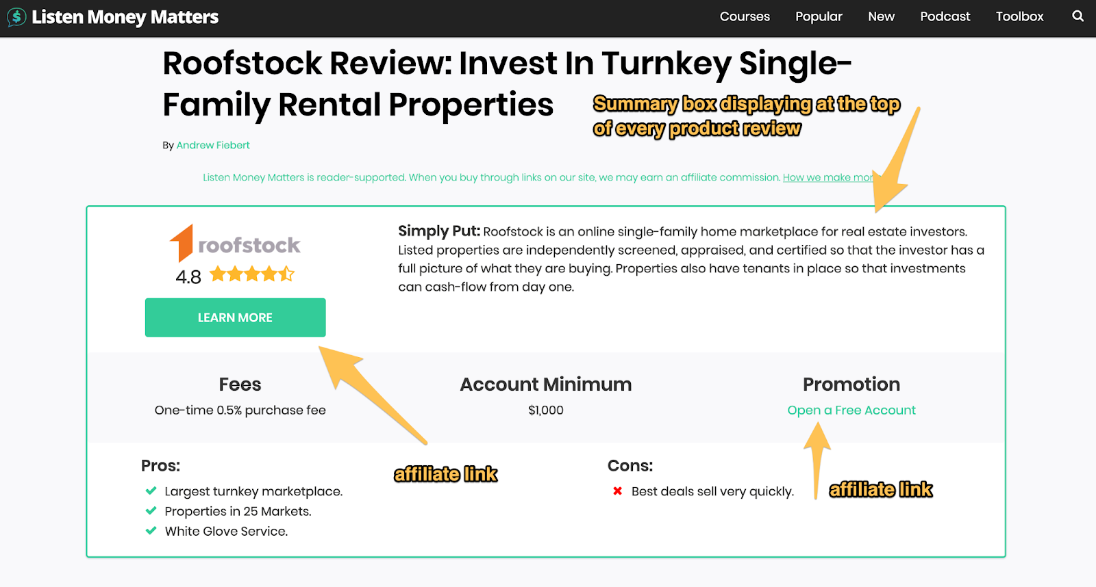 When our personal finance site, Listen Money Matters, started seeing an uptick in affiliate revenue, we discovered that a high proportion of commissions were originating from product review–style articles.
